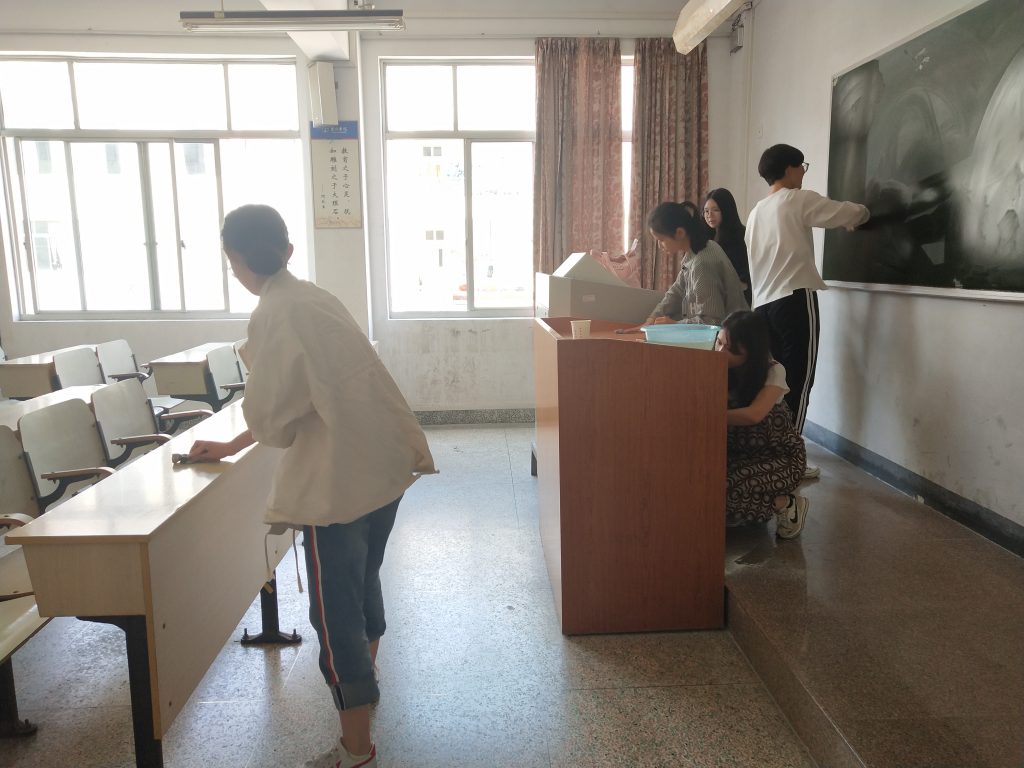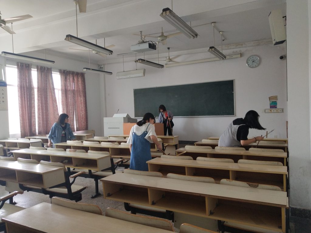5月3日至4日为迎接本科教学工作审核评估,马克思主义学院根据学校的统一部署,组织大一大二校优秀志愿者们对我院的包干区:三号教学楼和八根大柱的海报栏进行清扫工作。