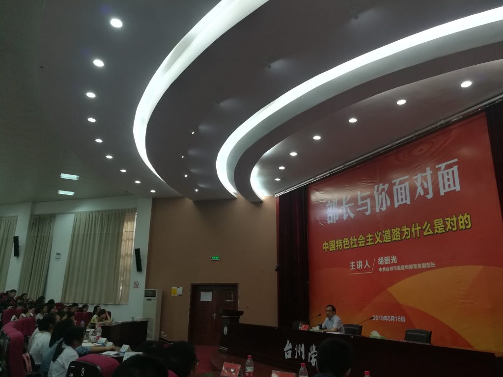 为了进一步学习、宣传、贯彻习近平新时代中国特色社会主义思想,5月16日,台州市委宣传部常务副部长胡韶光,应我校马克思主义学院和党委宣传部邀请,在椒江校区学术报告厅为广大师生做了题为《中国特色社会主义道路为什么是对的》的专题讲座。校党委委员、纪委书记金先龙予以热情接待,党委宣传部部长金松等出席,马克思主义学院院长林伟主持,全校200多名师生参加聆听。