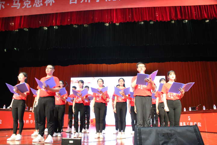 一场气势磅礴的《共产党宣言》朗诵拉开了大赛的帷幕,在火热的气氛中,金先龙书记上台为本次比赛发表讲话,他是马克思是世界无产阶级革命的精神导师,马克思主义作为立党立国的根本指导思想,要认真学习马克思主义,把握马克思主义中国化最新成果,用科学理论武装头脑、指导实践、推动工作,为进一步提升当代大学生马克思主义理论水平,推进习近平新时代中国特色社会主义思想进教材、进课堂、进学生头脑。
