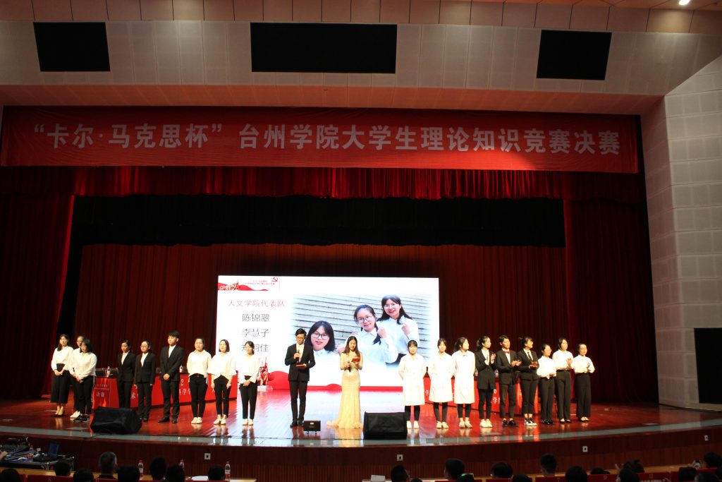 参加现场决赛的是在省赛初赛中除马克思主义学院之外,获得我校总分前六名的二级学院代表队。他们分别是艺术学院代表队,生命科学学院代表队,人文学院代表队,教师教育学院代表队,建筑工程学院代表队,医学院代表队。本次比赛的题型由选择题、填空题、简答题三部分组成。共分为五个环节,依次分别是必答题、轮答题、接龙题、抢答题以及风险题。其内容涵盖了十九大报告、2018年政府工作报告、2018年政协工作报告、高校思政理论课必修课教材和时政热点的相关知识。各队比分你追我赶,跌宕起伏。在接龙题环节中,各表队的比分开始拉开差距,特别是教师教育学院代表队的回答总能让人惊艳,每次出色的回答都能得到在场观众的欢呼。最终,教师教育学院代表队以300分得高分取得“卡尔.马克思杯”台州学院大学生理论知识竞赛非专业组的一等奖。校党委宣传部部长金松老师为马克思主义学院、生命科学学院、建筑工程学院、医学院、教师教育学院、颁发学院优秀组织奖。