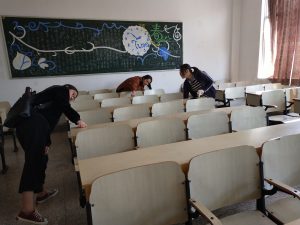 整场活动中,同学们都积极参与其中。在进行任务分配后,大家纷纷拿上打扫工具进入到三号楼的第二和第三层教室里开始清理工作。一些同学用湿毛巾将黑板擦净,另一部分同学则将课桌里的各种垃圾拣出扔进畚箕并清扫掉角落里的灰尘。经过同学们辛苦的劳作,一间间教室变得崭新而干净。