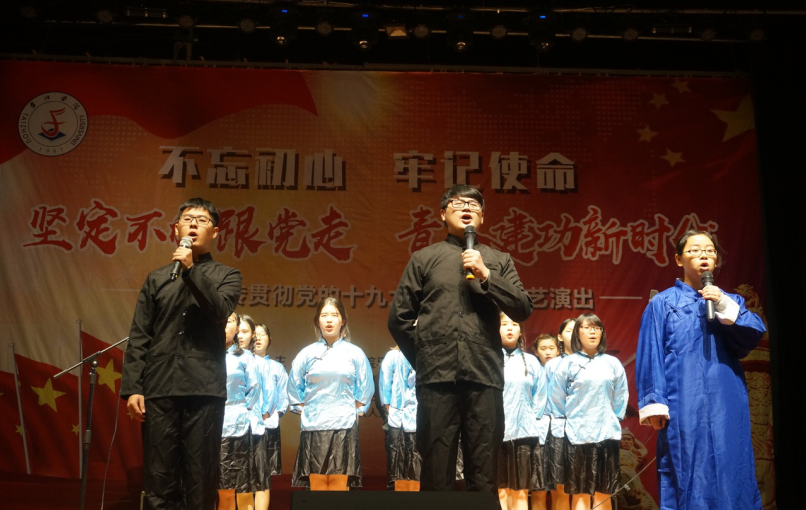 为进一步学习宣传贯彻十九大精神,同时弘扬和传承红色基因,由我校马克思主义学院主办,艺术学院、人文学院协办的“不忘初心,牢记使命,坚定不移跟党走,青春建功新时代”主题文艺演出于11月26日隆重举行。