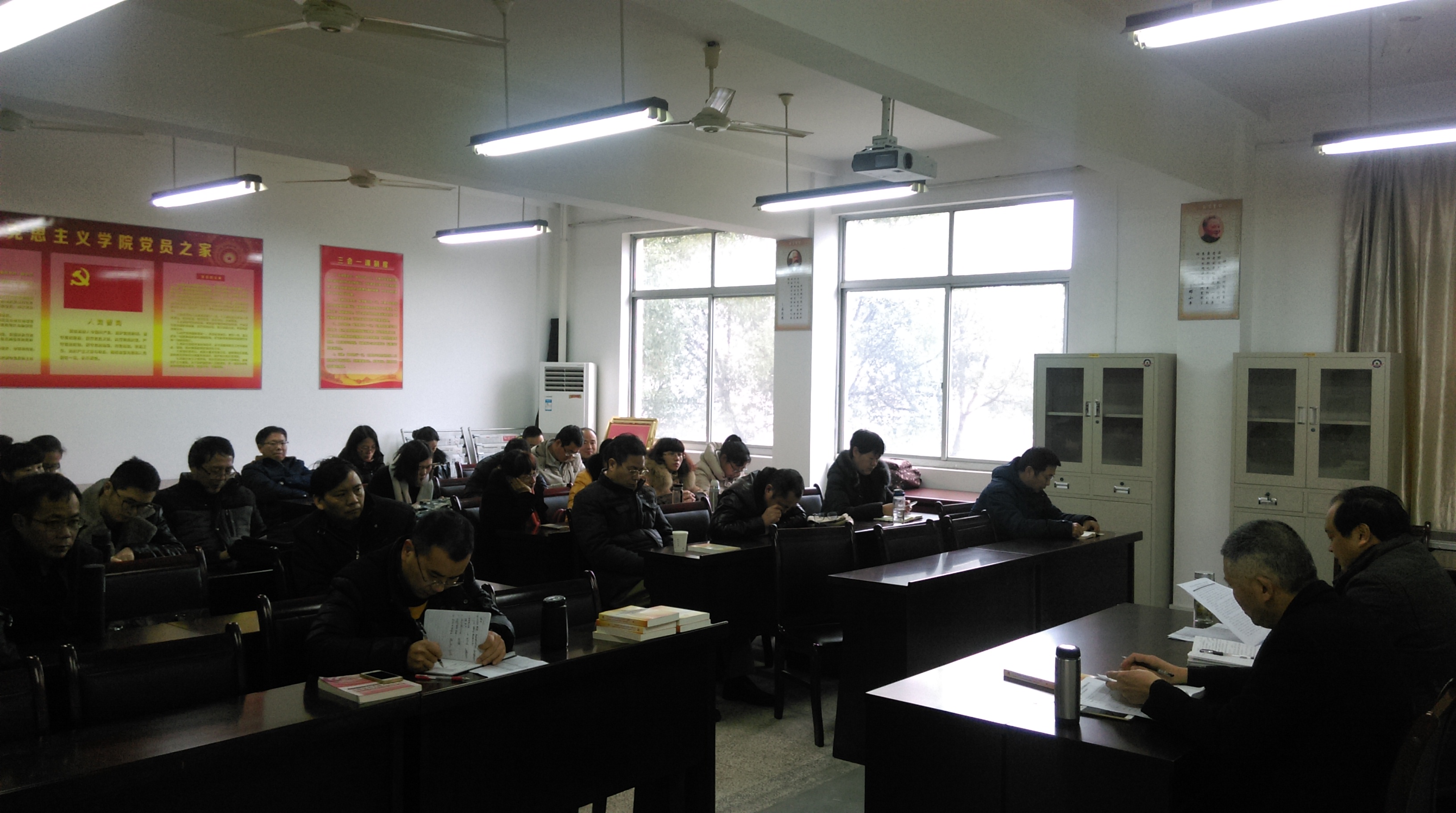 会上,学院党总支书记徐台榜指出,全国、全省高校思想政治工作会议都充分肯定了思政课的主渠道作用,对思政课提出了明确的要求。这次省委夏宝龙书记强调的“要上好思想政治理论课,推动‘思政课程’向‘课程思政’转变,在改进中加强、在创新中提高,让思想政治理论课真正活起来、好听起来、入心入脑,成为学生真心喜爱、终身受益的人生大课。”对于承担思政理论课教学、研究与马克思主义理论传播主要任务的学院,更是使命光荣、意义巨大。他同时强调,围绕着思政理论课的改革与创新:一是要改进思政课教材体系。要避免与中学教材内容的简单重复,要及时更新教学内容,把一些最新的社会发展成果吸收进去。既要有理论性与系统性,又要避免过于抽象与空洞,增强教材的可读性与可用性。通过教材让学生喜欢上思政课。二是要创新思政课教学方法。要根据教材的内容与学生的特点,采用最合适方法进行教学,要进一步加强实践教学,让学生在实践过程中接受教育。通过灵活多样的教学方法吸引住学生。三是要加快思政课教师培养。要定期组织思政课教师参加理论培训,及时领会与掌握党的最新的路线方针政策,了解最新的理论成果。要定期组织思政课教师去改革开放的前沿地区和革命圣地考察学习,亲身体会与感受。要组织思政课教师走出校园进行社会调研,多深入社会、接触社会、了解社会。思政课教师要通过自己深厚的理论功底与对社会的深刻理解,理论联系实际,教育学生,使学生受益。四是要改进思政课学业评价。学生学习思政课的评价,不能简单的以课堂学习结果为唯一的依据,应该结合学生平时的表现,特别像《思想道德修养与法律基础》,不能只看其掌握了多少理论知识,更要看其平时的所言所行。其他课程要与思政课同向同行,形成协同效应,思政课的教育作用才能得到有效的发挥。