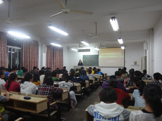 10月22日晚,思政部在3201教室举行2013年大学生暑期社会实践经验交流会,思政部五支社会实践小分队就暑期社会实践情况做了详细汇报。
