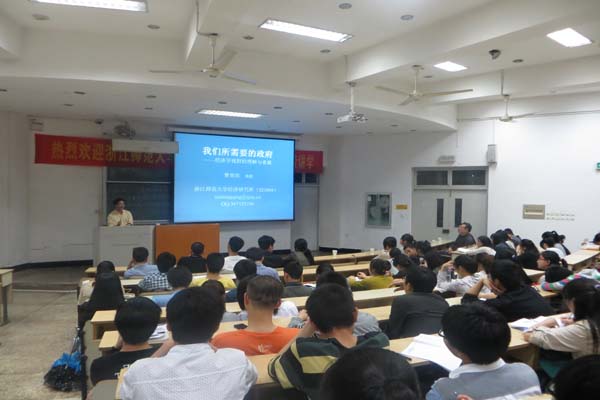 5月10日晚上,思政部邀请浙江师范大学硕士生导师曹荣庆教授来校,在临海校区A2大教室为思政部11、12级专业学生作题为《我们所需要的政府——经济学视野的理解与希冀》讲座,思政部党总支书记杜才平主持讲座。