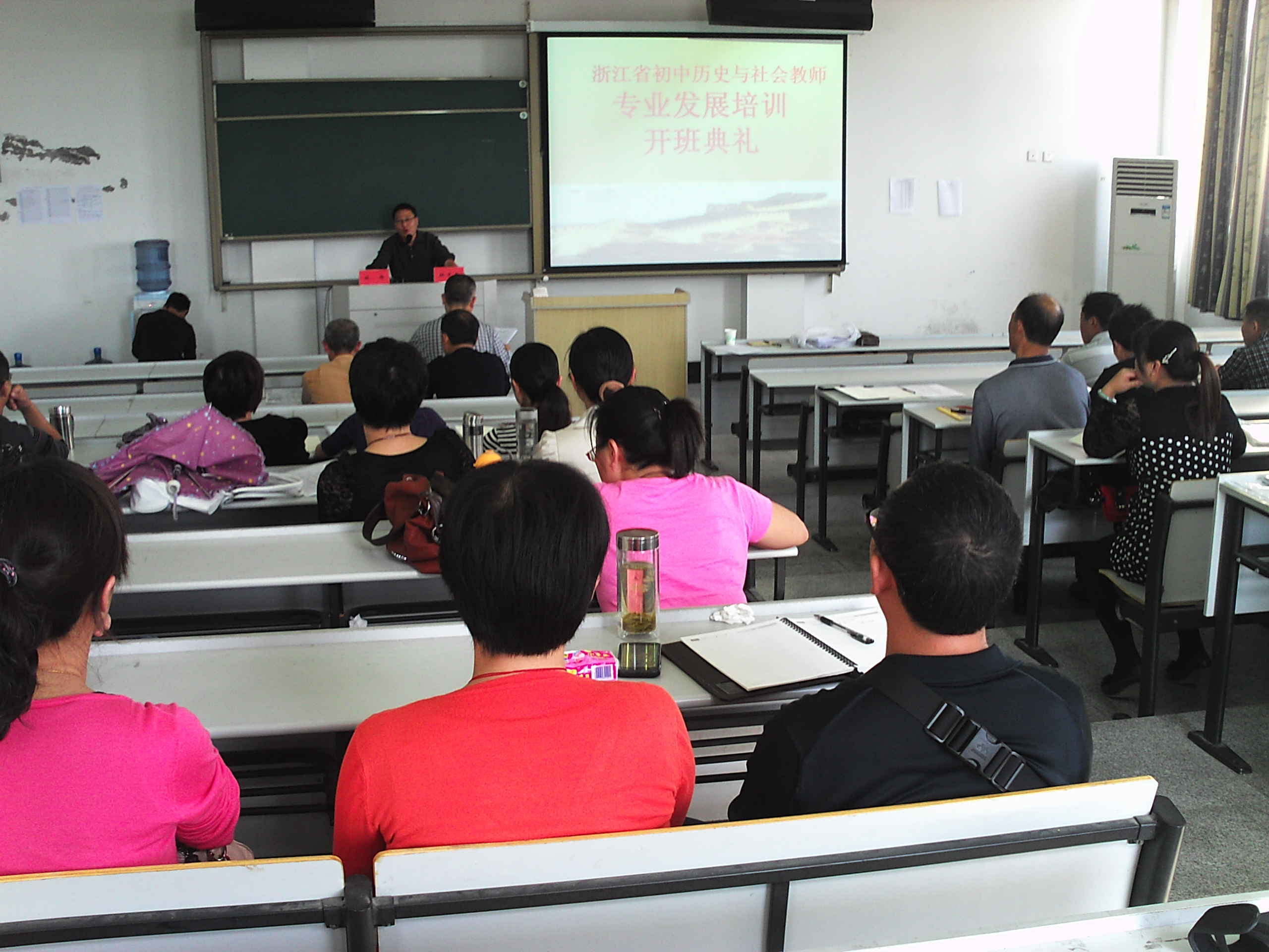 10月9日下午,浙江省初中历史与社会教师专业发展培训开班典礼在我校临海校区举行。思政部党总支书记杜才平致辞,副主任林伟主持,来自台州各县市区及温州、金华、衢州和丽水等地区的33名学员参加开班典礼。