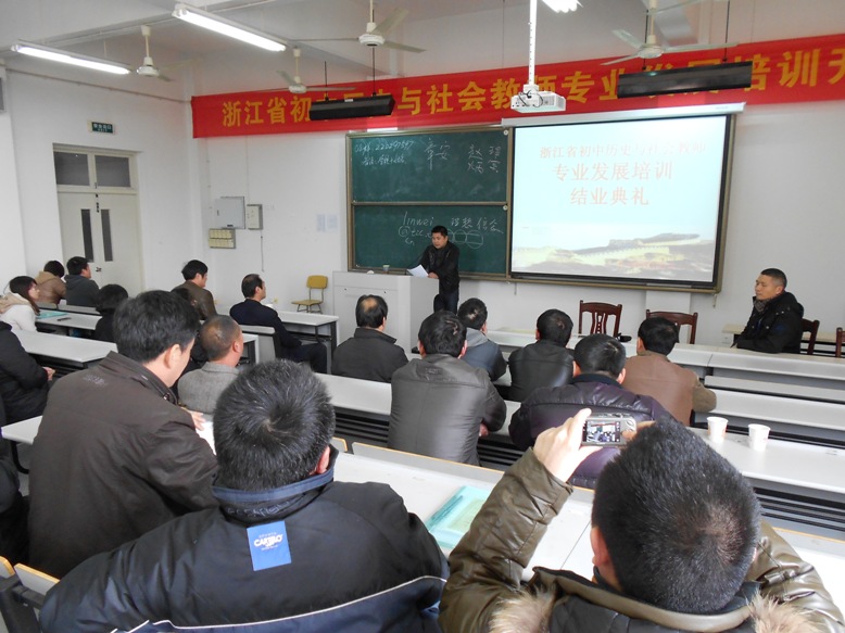 3月14日上午,由台州学院思政部承办的浙江省初中历史与社会教师专业发展培训项目结业典礼落下帷幕,思政部副主任林伟主持并作了总结发言。来自浙江9个地市的41位参训学员参加典礼。