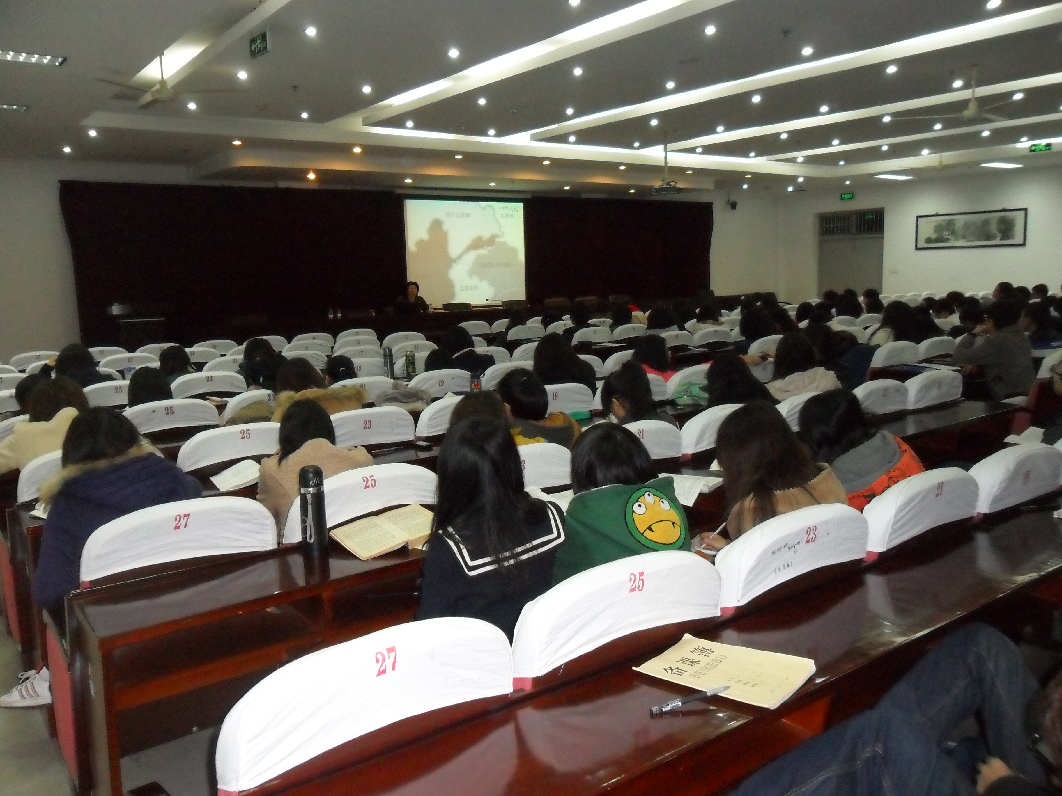 晁乐红老师就本次讲座围绕的核心问题做了全面和详细的阐述——当代民主进程回述,德赛先生的引进、原因及目的。演述过程中,她旁征博引,图文并茂,开诚点明“德先生”、“赛先生”于当时、现时的重要性同时,深刻剖析“德赛先生及反思”的主题,引导同学们深思当代“民主与科学”的实际需求,具体、形象、鲜明地引发同学们对时代民主与科学的国际大观感。