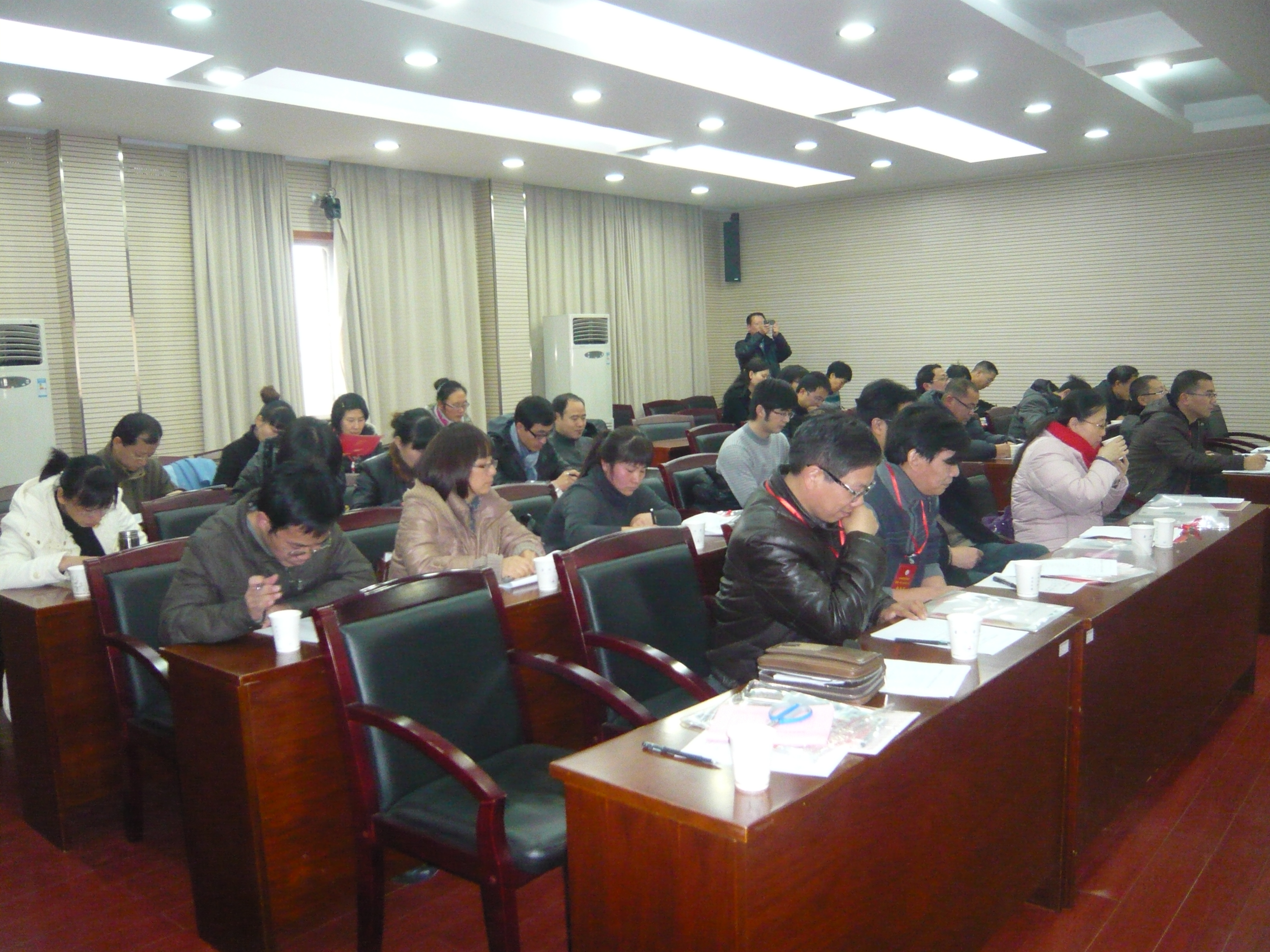 12月22日下午3时,思政部全体教职工齐集于临海校区第一会议室,出席思政部首届一次工会会员大会。大会由思政部党总支书记杜才平主持,台州学院工会副主席胡志伟莅临大会。