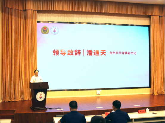 7月11日下午,台州市消防救援支队与台州学院马克思主义学院校地合作启动仪式在椒江校区国际会议厅举行。校党委副书记潘通天、省消防救援总队二级专员余昌带先后致辞。市消防救援支队党委书记、政治委员周鑫华,支队党委副书记、支队长沈梁,校党委委员、宣传部部长金松,支队党委委员、政治部主任刘性未,马克思主义学院院长林伟、党总支书记张礼强、副院长盛跃明出席。
