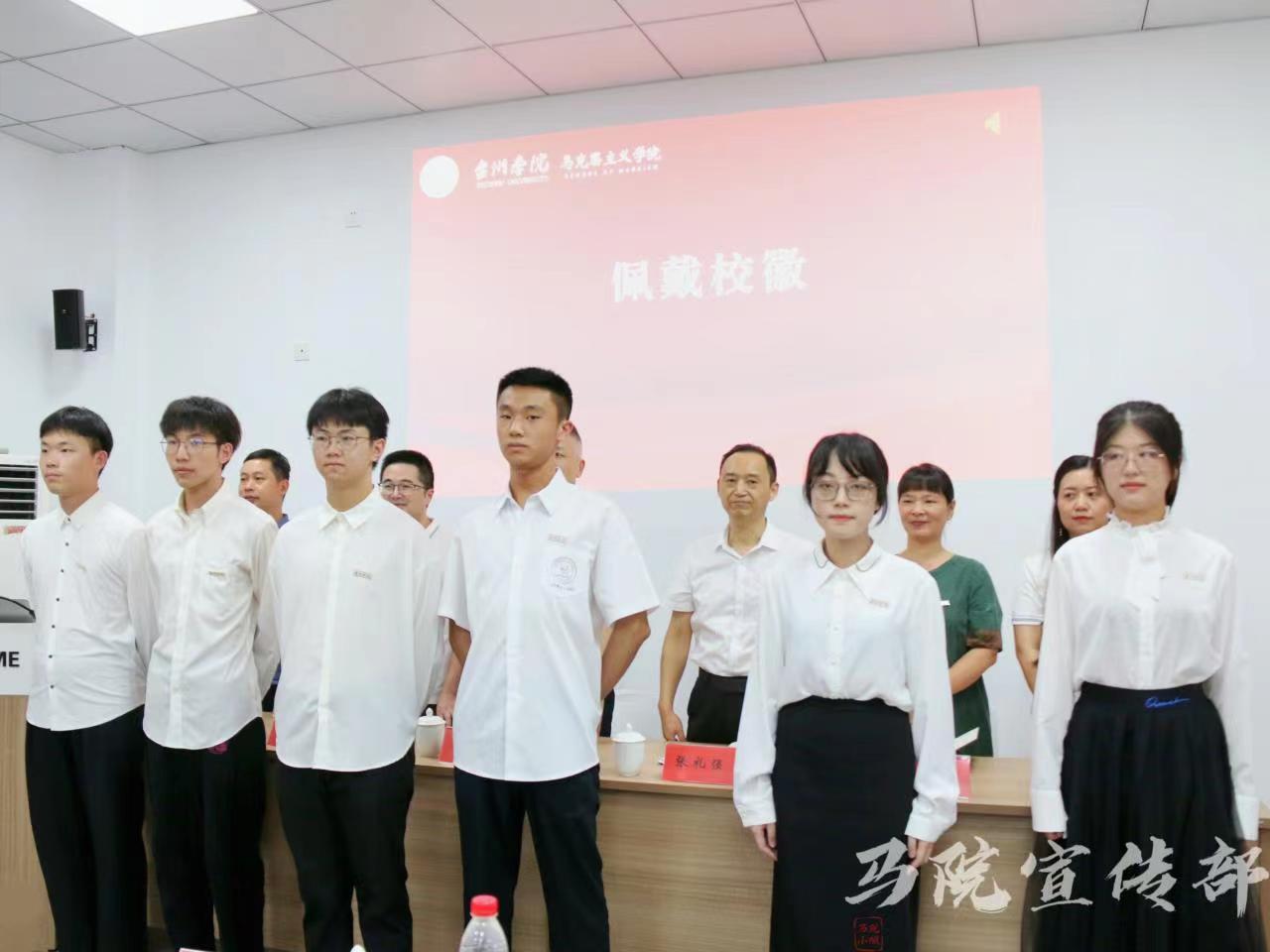 开学典礼在庄严的国歌声中拉开序幕。伴随着昂扬的进行曲,学院领导和新生班主任分别为新生代表佩戴校徽,其他新生在台下也为自己佩戴上了校徽。带上校徽,我们从此是“台院人”,让我们一同执笔,抒写青春的新篇章。