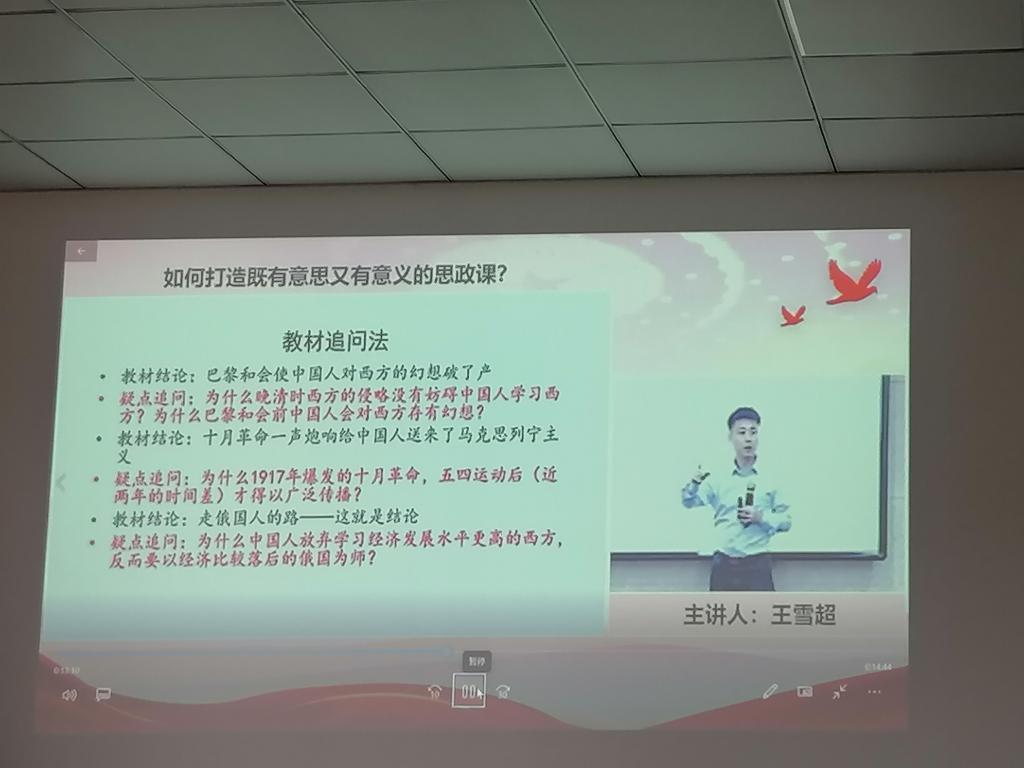 9月15日下午,马学院组织全体教师认真观摩学习了天津师范大学马克思主义学院副教授王雪超的精彩讲座“如何打造有意思又有意义的思政课”。王雪超曾获全国优秀教师、全国最美思政课教师、全国首届高校思政课教学展示活动特等奖国家级奖项或荣誉5项,其教学事迹被《人民日报》等国家级媒体多次专题报道。