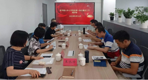 9月16日,新学期大中小学思政课一体化建设工作推进会,在台州市大中小学思政课一体化研究中心召开,会议由研究中心首席专家、台州学院马克思主义学院张天华教授主持。台州学院宣传部部长、校党委常委金松、台州学院教务处处长金凌虹、台州学院中小学教师培训中心主任吴文姝、台州学院马克思主义学院党总支书记张礼强出席会议并发言。研究中心成员张天华教授、王在亮博士、陈昌兴博士、崔永江副教授、周军虎博士、吕锦芳博士、王永力博士做工作汇报。