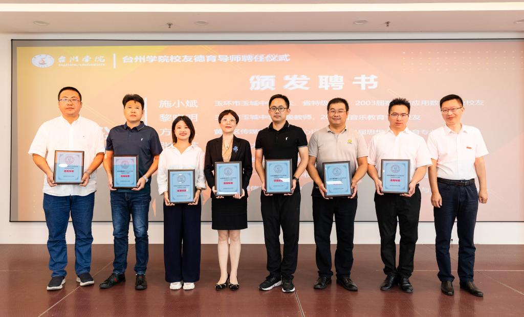 李钧敏向与会各位校友表示热烈的欢迎和衷心的祝贺。她指出,校友是学校办学的重要资源。德育导师制度是我校思政课“1+N”教学模式改革的重要内容之一,已成为我校贯彻落实习近平总书记关于思政课建设重要指示的特色举措。这次,通过推荐和自荐相结合的方式,遴选出首批共35名校友德育导师,进一步体现了开门办思政课、实现思政小课堂与社会大课堂相结合的协同育人理念。希望新聘导师要选准讲课主题,突出立德励志;要适应学生特点,增强亲和力和感染力;要加强理论修养,提升育德能力。期待导师们通过言传身教,讲好故事,将台院人“澡身浴德、修业及时”的校训精神,更好地传递给台州学院的新生力量,帮助他们坚定理想信念,树立正确的世界观、人生观、价值观。