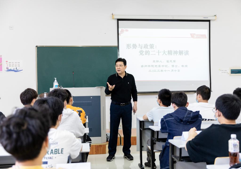 学习贯彻党的二十大精神校园宣讲活动于11月10拉开帷幕,台州学院党委书记崔凤军,党委副书记、校长乐传永等校领导陆续走进思政课堂作宣讲报告,制药工程等十余个专业的学生聆听宣讲。
