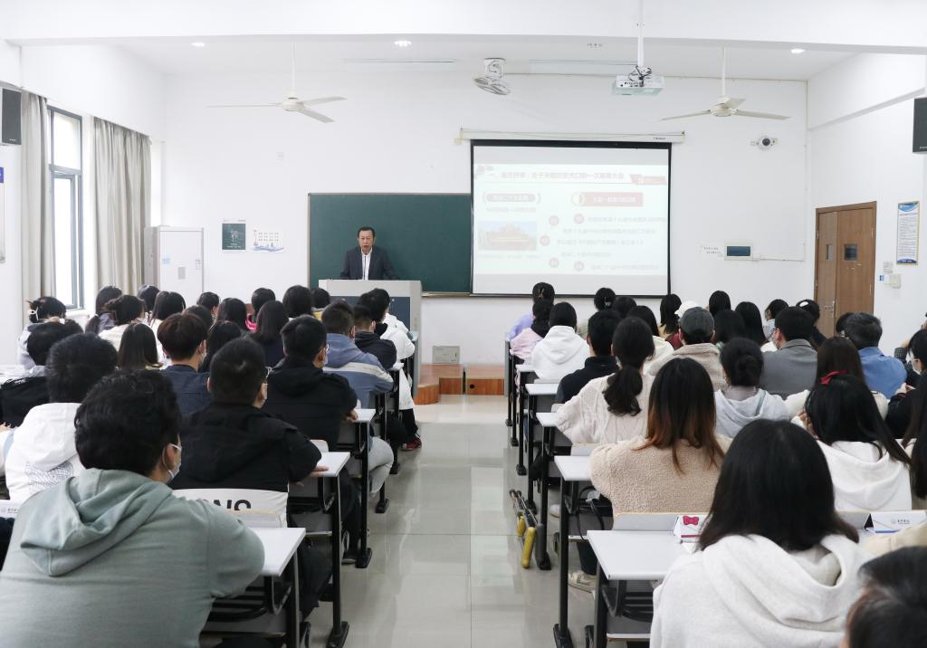 乐传永围绕党的二十大报告主题内容从辉煌历程、继往开来、数读报告、伟大变革、擘画蓝图、开启新篇等六个方面,生动阐释了党的二十大的理论创新和主要成果,他寄语在座学生,要深刻领悟党的二十大的精神能量,永远跟党走、励志担使命、斗争赢未来;要深刻领悟党的二十大的实践力量,把学习和实践有效地结合起来,向着第二个百年奋斗目标奋勇前进。