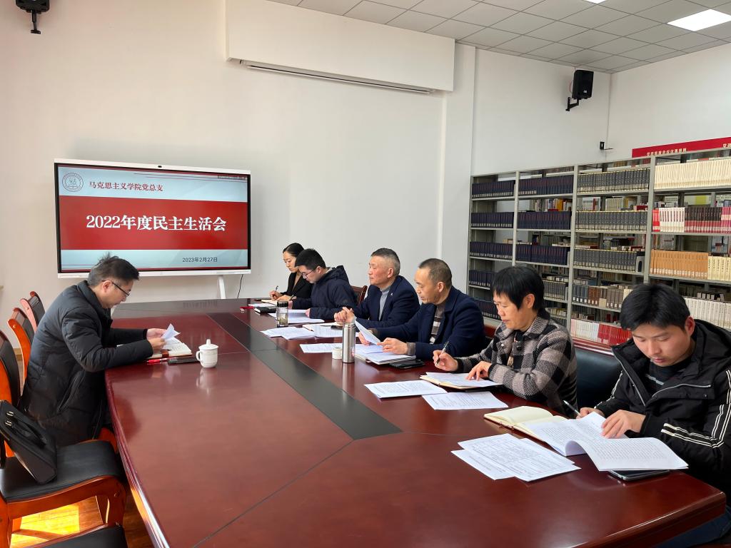 2月27日下午,马学院党总支召开2022年度民主生活会,校党委委员、宣传部部长金松到会指导,马学院党政领导班子成员和党总支委员出席会议。