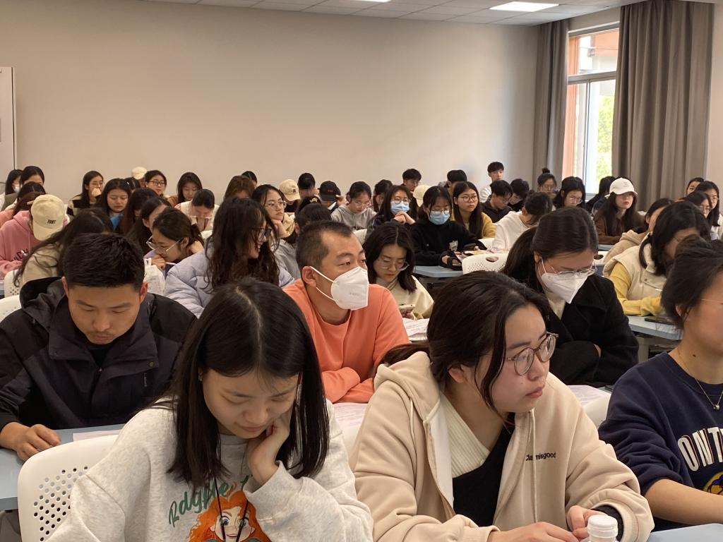 庄道程老师就即将到来的教资考试为同学们指点迷津,对教学设计部分进行详细解释分析,指明必要的操作流程。教务办许春红老师介绍了具体的实习任务和要求,针对同学们的提问作出了详细解答。