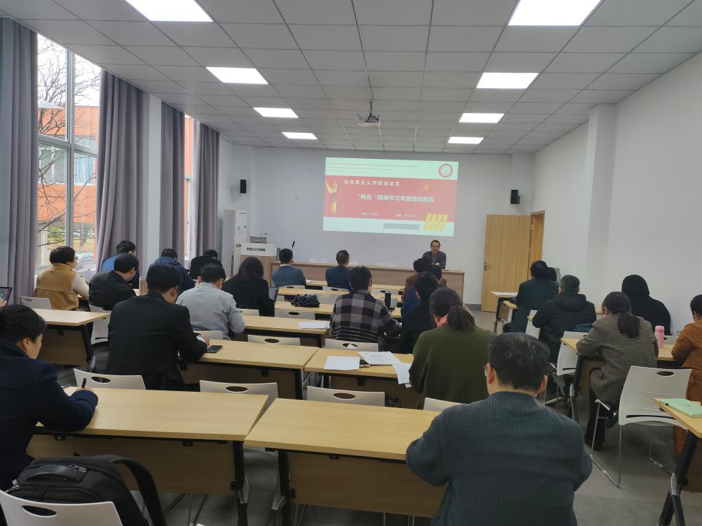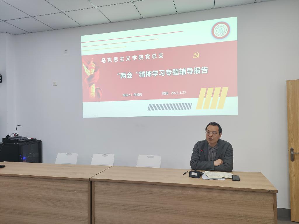 3月23日下午,学院召开党总支理论学习中心组学习(扩大)会,深入学习贯彻全国两会精神,学院党总支书记张礼强主持会议,全院教工参加会议。教工第一党支部书记陈昌兴在会上作“两会”精神学习专题辅导报告。