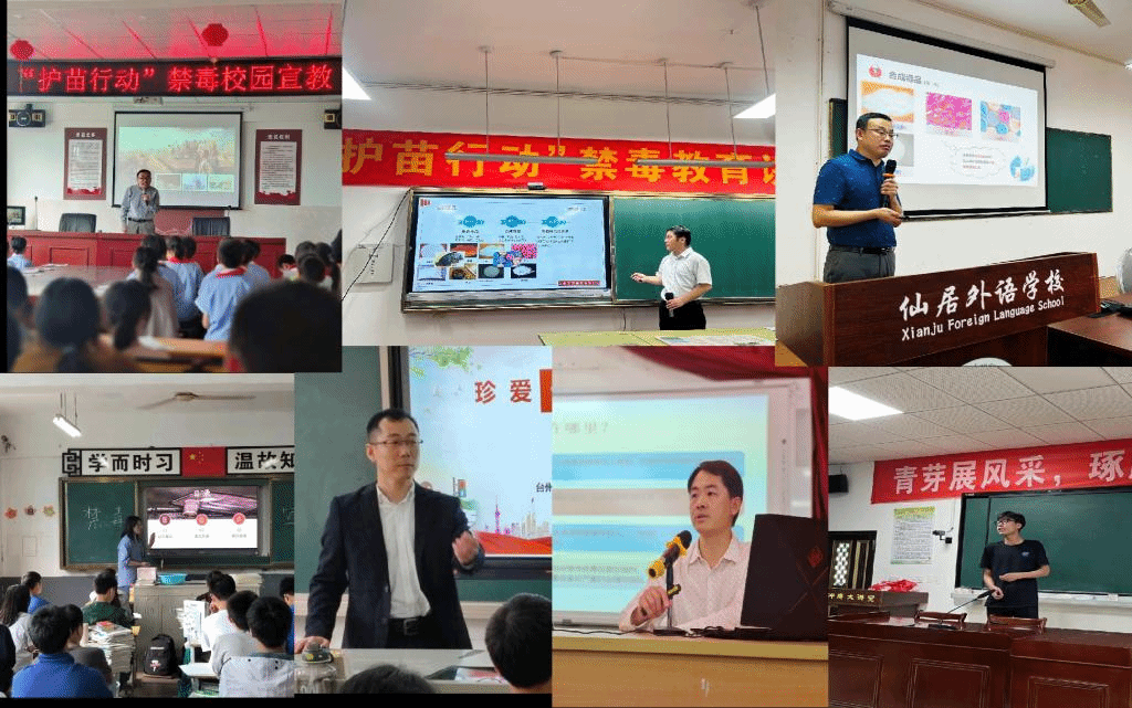 同日宣讲团成员分别进入到仙居县各中学开展禁毒宣传。18日和19日两天,宣讲团为仙居县17所初、高中、中职学校开展了现场禁毒教育讲座。