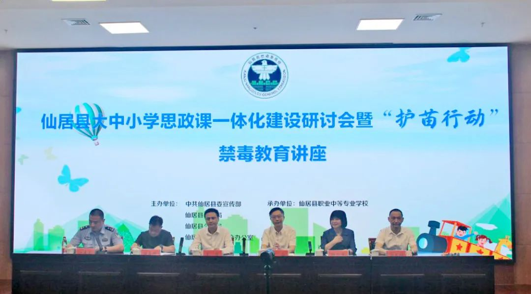 5月18号,仙居县大中小学思政课一体化研讨会暨”护苗行动”禁毒教育宣讲活动在仙居县职业中等专业学校举行。台州市大中小学思政课一体化研究中心主任、台州学院党委委员、宣传部部长金松,台州市大中小学思政课一体化研究中心首席专家、禁毒教育宣讲团负责人、台州学院马克思主义学院院长张天华,台州市大中小学思政课一体化研究中心副主任张礼强,仙居县委宣传部常务副部长吴凯,县禁毒办主任、县公安局副局长任康鑫,县教育局党委委员、总督学、仙居职业中专校长应良俊参加会议,金松、吴凯、应良俊做大会发言,任康鑫主持第一阶段会议。台州市禁毒教育宣讲团成员、仙居县初中、高中、中职校德育副校长、政治教研组长及仙居县职业中等专业学校师生代表参加会议并听讲座。