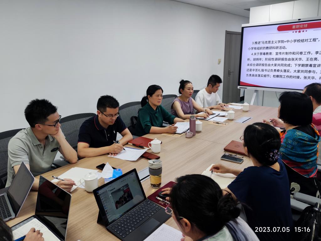7月5日下午,台州市社科联副主席王仲媚及市社科联学会与科研处处长阮静潇、陈桥一行三人来到台州市大中小学思政课一体化研究中心就人文社科研究、平台建设等相关工作进行调研指导,马克思主义学院院长张天华教授主持调研会。