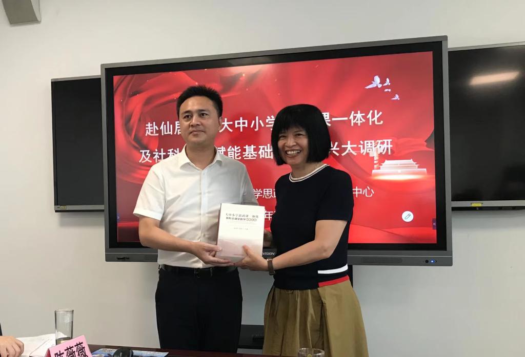 座谈会交流结束后,现场还举行了简短而又暖心的赠书仪式。研究中心将《大中小学思政课一体化新形态课堂教学创新实践》《大中小学思政课同课异构一体化教学设计样例库》等相关研究成果赠予仙居县委宣传部、县教育局、中小学思政课教研员和一线思政课教师代表,此次赠书活动营造出研究中心和仙居各部门共同将大中小学生培养成德智体美劳全面发展的社会主义建设者和接班人的良好氛围。