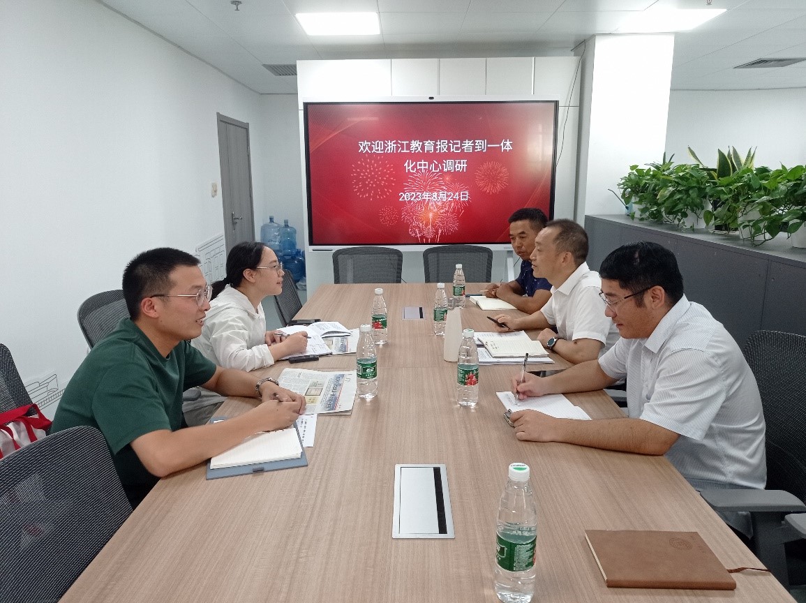 8月24日,浙江教育报记者季颖、台州市教育局高等职成教处潘嘉楠到台州市大中小学思政课一体化研究中心,就台州市大中小学思政课一体化工作开展调研座谈。座谈活动由台州市大中小学思政课一体化研究中心常务副主任张礼强主持,台州学院马克思主义学院周军虎博士、台州学院马克思主义学院王在亮博士、台州学院马克思主义学院王永力博士参与了座谈。