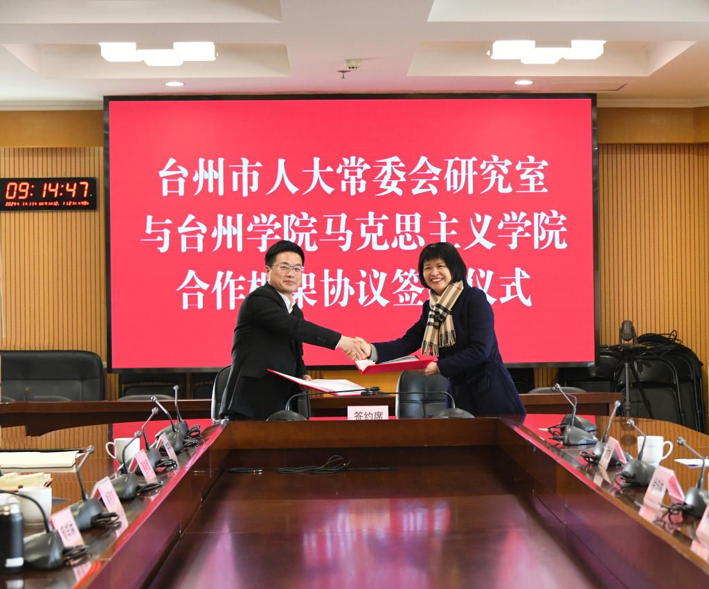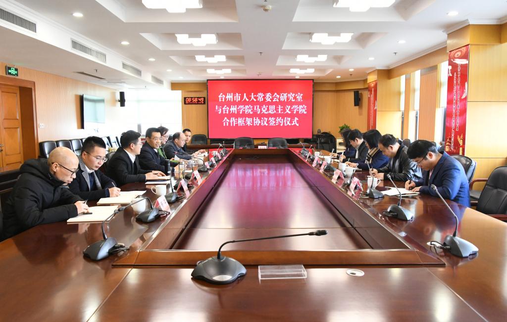 张天华院长与台州市人大常委会副秘书长、研究室主任童文兴分别代表双方签署了合作框架协议。