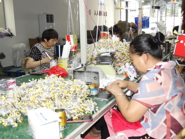 图为镇民做工