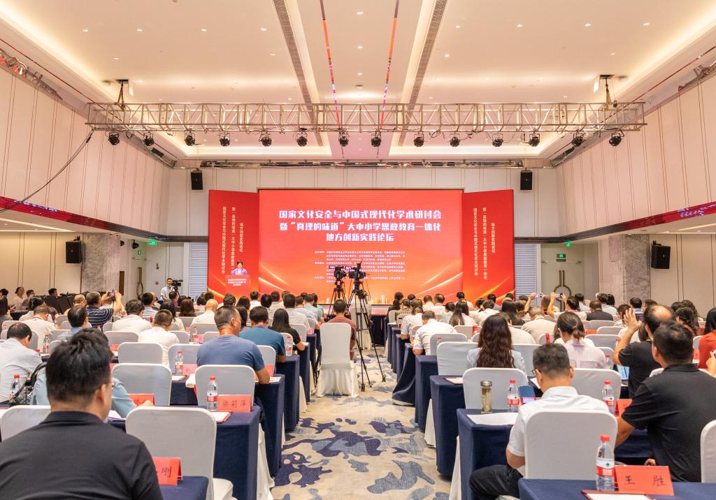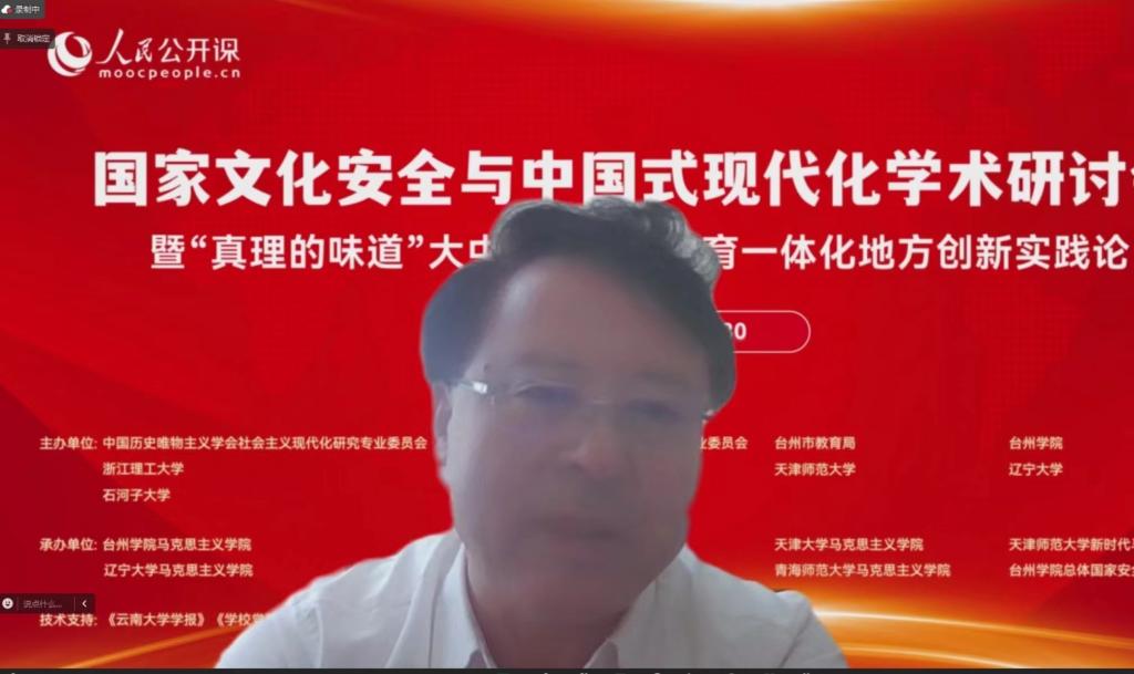 9月21日,“国家文化安全与中国式现代化”学术研讨会在台州成功举办。党的二十届三中全会公报强调:“国家安全是中国式现代化行稳致远的重要基础”。为了进一步学习好贯彻好党的二十届三中全会精神,推进中国式现代化与国家文化安全融入大中小学思政教育一体化建设,由中国历史唯物主义学会社会主义现代化研究专业委员会、中国历史唯物主义学会文化安全与建设专业委员会、台州市教育局、台州学院、浙江理工大学、天津大学、天津师范大学、辽宁大学、石河子大学、青海师范大学等单位联合举办了“国家文化安全与中国式现代化学术研讨会暨‘真理的味道’大中小学思政教育一体化地方创新实践论坛”,《云南大学学报》《学校党建与思想教育》《台州学院学报》、人民公开课(人民网文华在线)提供学术与技术支持。研讨会以线下会议与线上直播相结合的方式举行。来自浙江省各市教育局相关领导、台州市大中小学思政课教师代表、全国知名高校的180余名专家学者齐聚一堂,共襄盛举。