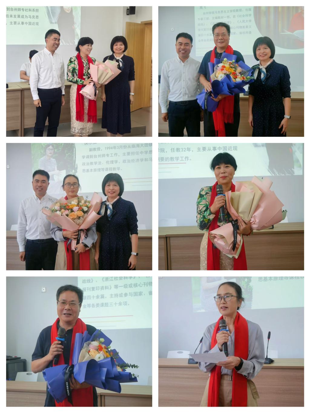 退休老师代表陈萍萍老师、高飞教授、侯水仙老师依次发言,纷纷表达了对马院大家庭以及其他老师恋恋不舍的情感,感恩学校学院给予的关心和关爱,他们感慨几十年来学校以及学院事业的蓬勃发展,并对学校学院未来发展送出了最诚挚的祝福。