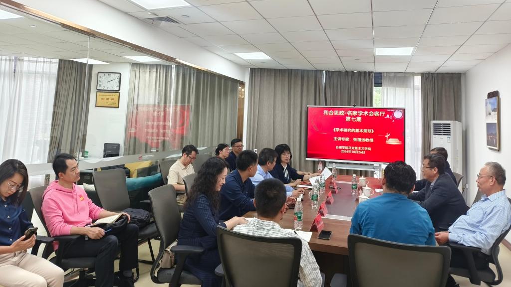 为了满足老师们的强烈学术需要,10月26日,马克思主义学院成功举办了第七期“和合思政·名家学术会客厅”学术交流活动,特别邀请南京航空航天大学马克思主义学院王岩教授、南开大学马克思主义学院纪亚光教授、中国石油大学(华东)马克思主义学院张福运教授等三位全国知名专家来学院开展学术交流活动。院长张天华教授主持本次报告会,学校党委委员宣传部部长蔡海江、学院党总支书记王胜以及部分老师共同参加。