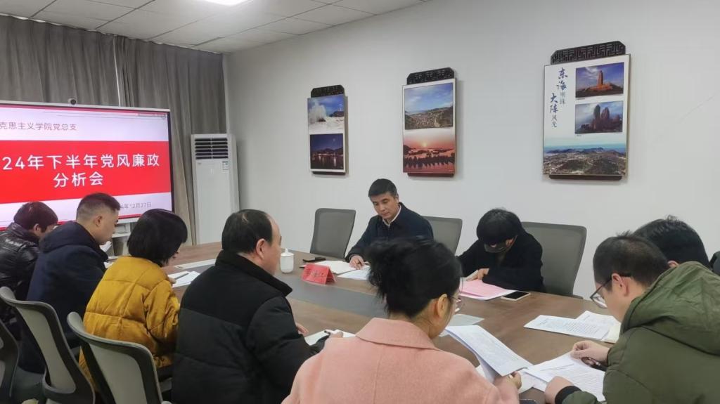 12月27日,马克思主义学院召开了下半年党风廉政建设分析会。校党委委员、宣传部部长蔡海江,校纪委委员、机关党委专职副书记张梅芬莅临会议指导。学院领导班子成员、总支委员和各党支部书记参加此次会议,会议由学院党总支书记王胜主持。