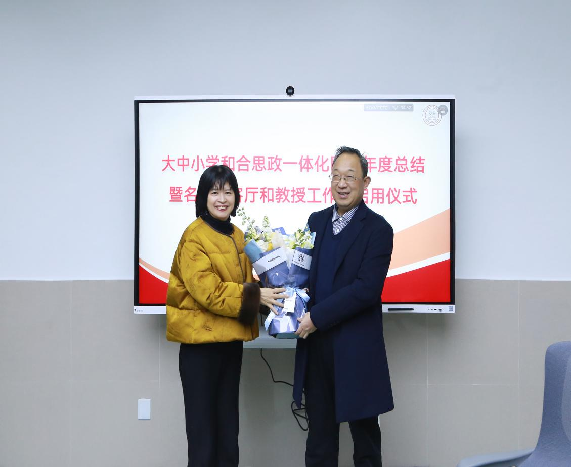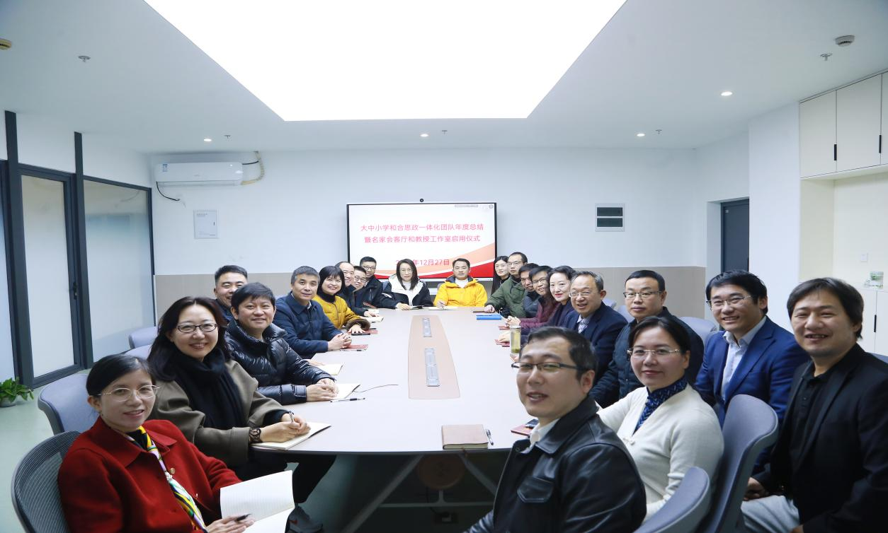 2024年12月27日,台州市大中小学和合思政一体化团队召开2024年终总结会暨名家会客厅和教授工作室启动仪式,分析总结2024年台州市大中小学思政课一体化建设工作,研究谋划2025年一体化工作思路和任务举措。学校党委委员、宣传部长蔡海江及学院党政班子成员、一体化团队老师线上线下共同参加会议,市大中小学和合思政一体化团队领衔人、院长张天华教授主持会议。