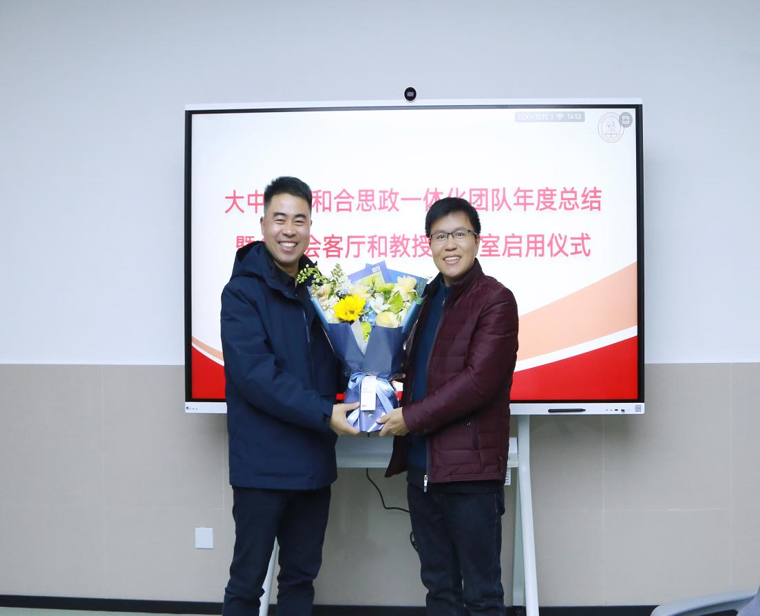 会议开始之前,学院举行了名家会客厅和教授工作室启动仪式。蔡海江、张天华、王胜分别为学科领军人才于春玲教授、学科带头人袁杰教授、郑振宇教授献花,祝贺名家会客厅和教授工作室的正式启动。于春玲教授、袁杰教授、郑振宇教授分别讲话,一致表示会通过名家会客厅和教授工作室的示范、引领、指导、辐射作用,创新学院教科研平台,培养一批教科研骨干教师,进一步推动马克思主义理论学科高质量发展。