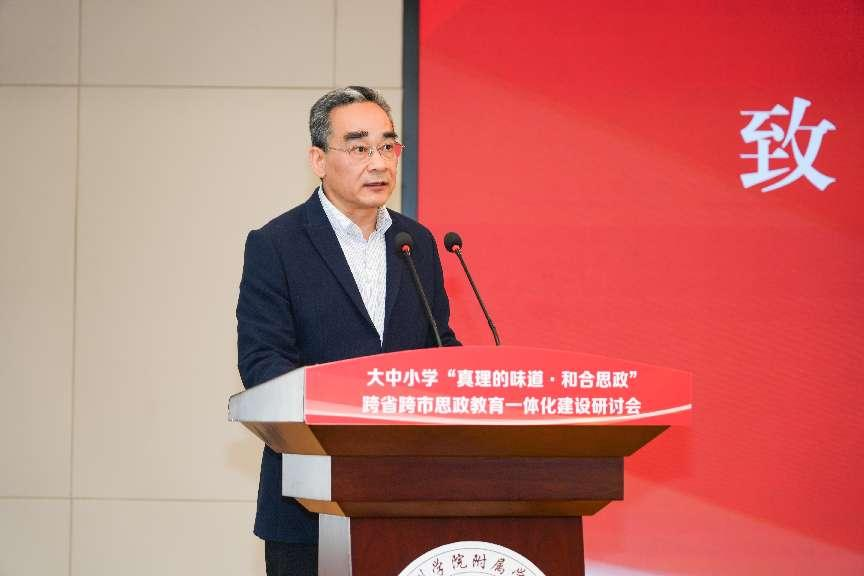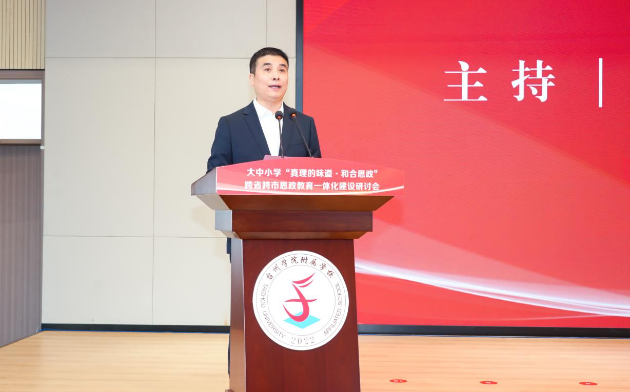 台州市委教育工委专职副书记,市教育局党组副书记陈海晓在致辞中指出,台州市一直以来高度重视大中小学思政教育一体化建设,在全省率先建立台州市大中小学思政课一体化研究中心,合力打造“和合思政”育人品牌,推动台州思政教育质量整体跃升。近年来,台州市教育局通过创设制度贯通,统配资源贯通,创造新的特色资源,融合三全育人,助推一体化建设可持续发展。