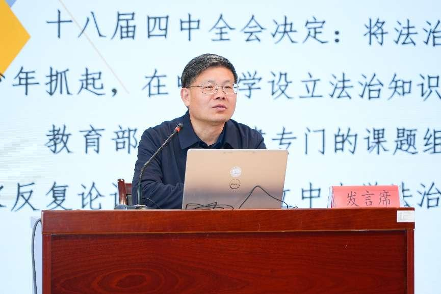 陈大文教授作了题为“新时代大中小学校法治教育改革与发展”的学术报告。陈大文教授指出,为了落实党中央关于加强学校法治教育的精神,教育系统深入推进大中小学法治教育一体化改革发展,主要体现在教育目标更准确,教育理念更先进,课程设置更合理,教学内容更充实,教学方法更适切,教学评价更科学,一体化程度和教学效果得到了整体性提升。