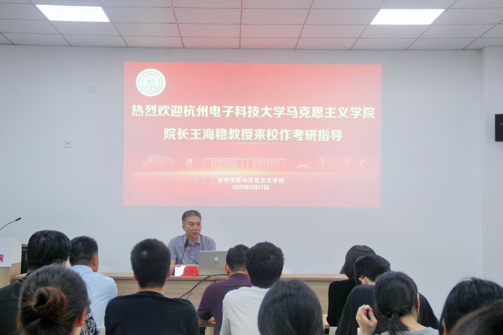 为帮助考研学子明确目标、掌握方法,5月21日晚,马克思主义学院在临海校区举办考研专题宣讲会,特邀杭州电子科技大学马克思主义学院院长王海稳教授作辅导报告。学院院长张天华、党总支书记王胜、副书记徐培林出席活动,全体考研学生参加。