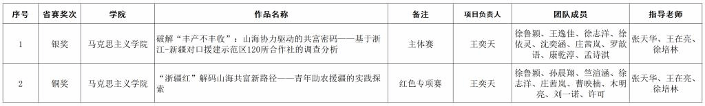 无挑战,不青春!5月16日至18日,浙江省第十九届“挑战杯”大学生课外学术科技作品竞赛决赛在浙江中医药大学举办,我院《破解“丰产不丰收”:山海协力驱动的共富密码——基于浙江-新疆对口援建示范区120所合作社的调查分析》《“浙疆红”解码山海共富新路径——青年助农援疆的实践探索》参赛项目荣获主体赛赛道省级银奖1项,红色专项赛赛道省级铜奖1项!展现了我院学子勇于创新、敢于挑战的青春风采。