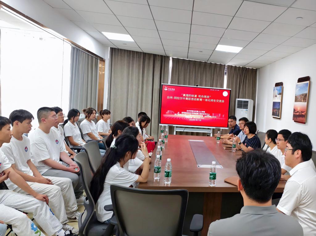 7月11日,在台州市援疆指挥部的大力支持下,台州学院马克思主义学院、台州市大中小学思政课一体化研究中心、浙江省教育科技人才强省建设智库联盟(台州学院大中小学思政课一体化研究中心)与新疆生产建设兵团第一师阿拉尔职业技术学校联合举办“真理的味道·和合思政”台州-阿拉尔中高职思政教育一体化师生交流会。此次交流会,旨在深入贯彻党的二十届三中全会精神和习近平总书记关于思政课一体化建设的重要讲话精神,充分发挥思政课在落实立德树人根本任务中的关键作用,为跨省跨市中高职思政教育一体化建设提供新的思路与方向。马克思主义学院院长张天华教授主持,党总支书记王胜、副院长李跃华、王在亮、办公室主任范淑燕,第一师阿拉尔职业技术学校副校长潘林超、思政课教师张静、席晓莉、张广俊、郭加明,以及第一师阿拉尔职业技术学校学生代表参加。