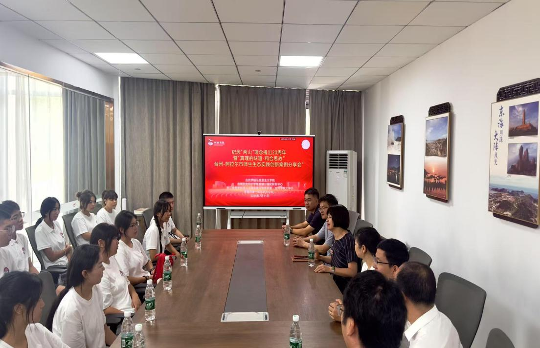 2025年是绿水青山就是金山银山理念提出20周年。为深化“两山”理念践行,讲好“两山”故事,加强习近平生态文明思想研究,纪念“两山”理念提出20周年暨“真理的味道·和合思政”台州-阿拉尔大学生生态实践创新案例分享会于2025年7月11日在台州学院召开。会议由台州学院马克思主义学院、台州市大中小学思政课一体化研究中心、浙江省教育科技人才强省建设智库联盟(台州学院大中小学思政课一体化研究中心)与新疆生产建设兵团第一师阿拉尔职业技术学校联合举办。
