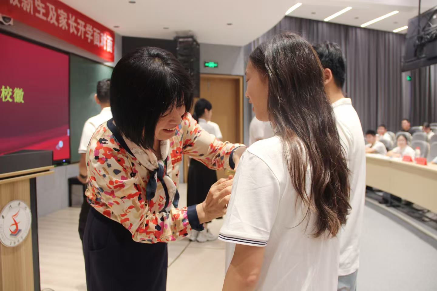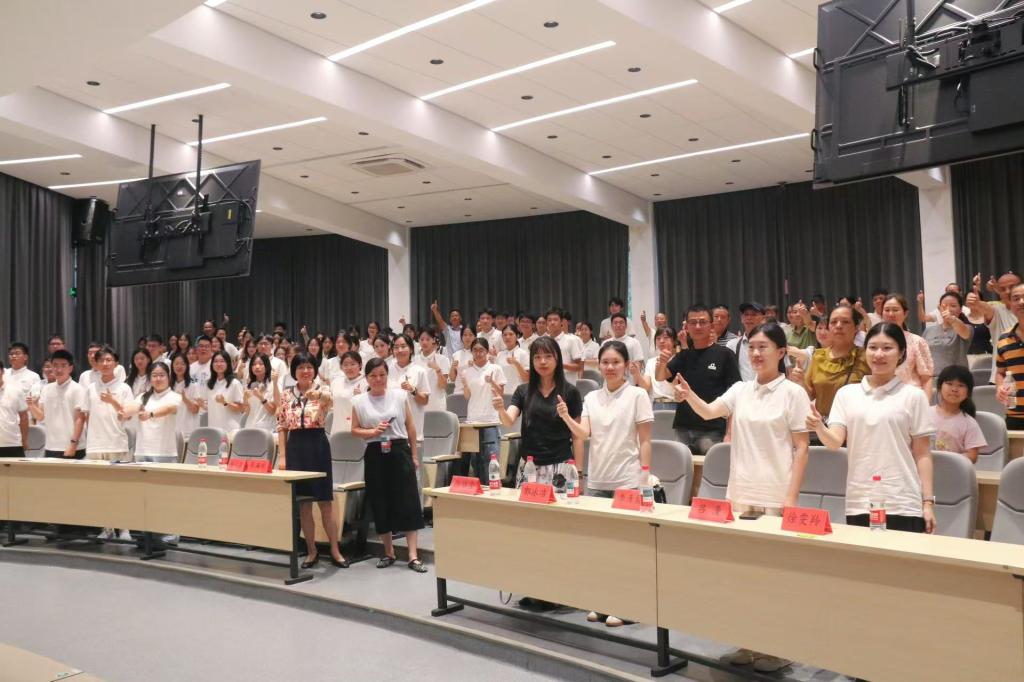 活动中,学院领导还为新生代表佩戴了校徽,象征着他们正式成为马克思主义学院的一员。在活动的最后环节,全体老师与家长起立,共同为2025级新生点赞,祝愿他们在新的起点上能够更好地发展自我,书写属于马院学子的精彩华章。