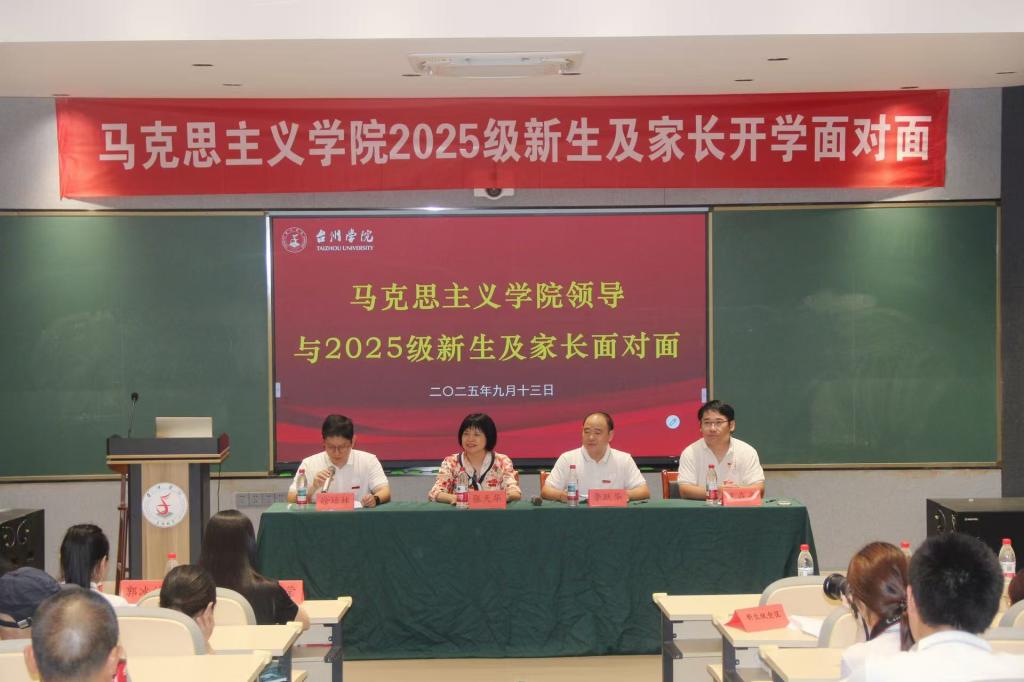 为扎实推进新生始业教育,构建家校协同育人桥梁,9月13日下午,马克思主义学院在临海校区A6教室举行学院领导与2025级新生及家长开学面对面。学院院长张天华、副院长李跃华、王在亮,台州市大中小学思政课一体化研究中心副主任张礼强等领导出席活动,学院党总支副书记徐培林主持。活动还特别邀请了家庭教育专家张海珍作专题辅导,2025级全体本、研新生及家长代表共同参与。