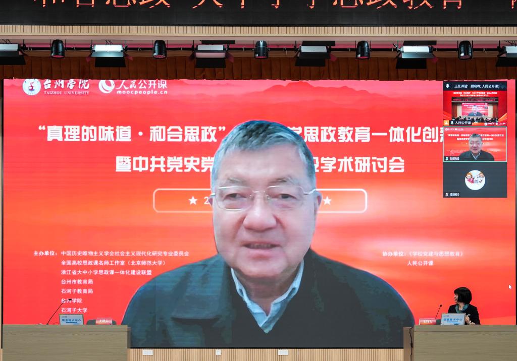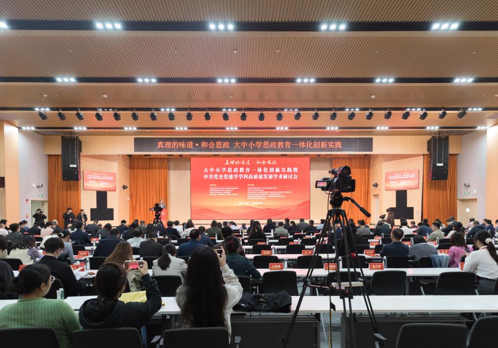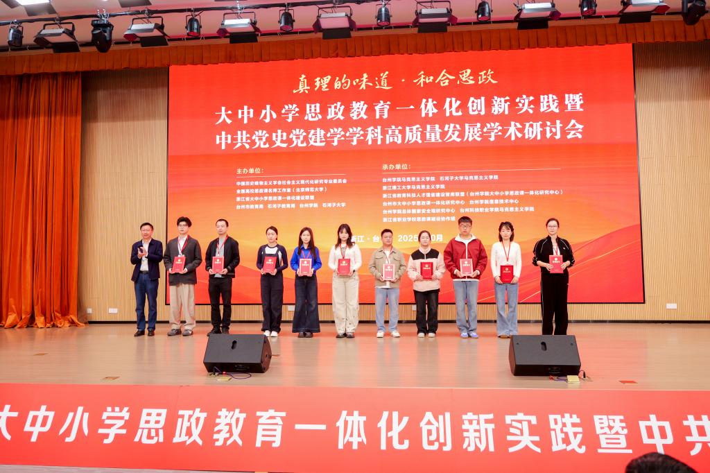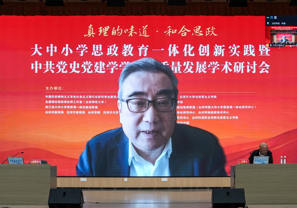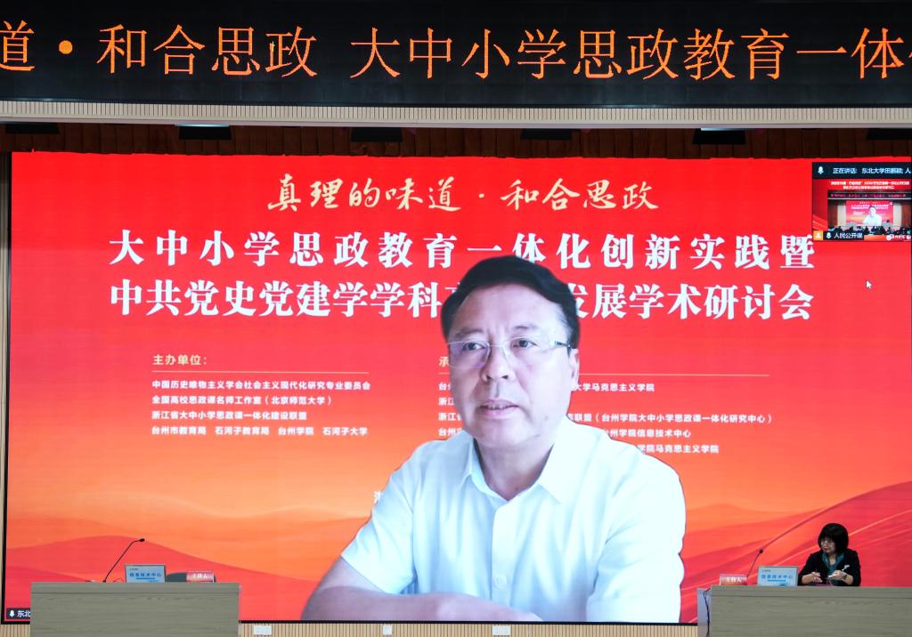 为深入贯彻党的二十届四中全会精神,深刻领会习近平总书记关于加强和改进思想政治工作的重要论述,推进“真理的味道·和合思政”大中小学思政教育一体化品牌建设,由中国历史唯物主义学会社会主义现代化研究专业委员会、全国高校思政课名师工作室(北京师范大学)、浙江省大中小学思政课一体化建设联盟、台州市教育局、石河子教育局、台州学院、石河子大学等单位联合举办“‘真理的味道·和合思政’大中小学思政教育一体化创新实践暨中共党史党建学学科高质量发展学术研讨会”在台州学院成功举办。来自全国26个省市自治区200余名专家学者线下齐聚,共襄学术盛宴,另有15000余人次在线上收看会议。