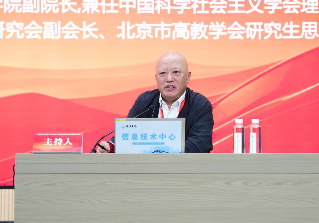 中国文化软实力研究中心主任,国家社科办原主任张国祚教授作了题为《谈谈党史党建学在思政教学中的地位》的主旨报告。他指出,党史学习教育的核心要义在于准确把握“明理、增信、崇德、力行”的内在逻辑与实践要求,这一根本遵循需从四个维度深入践行。他强调,学习历史能加强理论武装,理解党的成功和马克思主义、中国特色社会主义的必然性;通过回顾党的光辉历程,增强自信,巩固信仰基础;从党的精神谱系中汲取道德力量,培养忠诚、公德和自律品德;将学习成果转化为实际行动,解决发展问题。他还结合中华文明史,阐释了党的初心使命的历史传承和时代价值,指出党的创新理论具有强大的真理和实践力量。