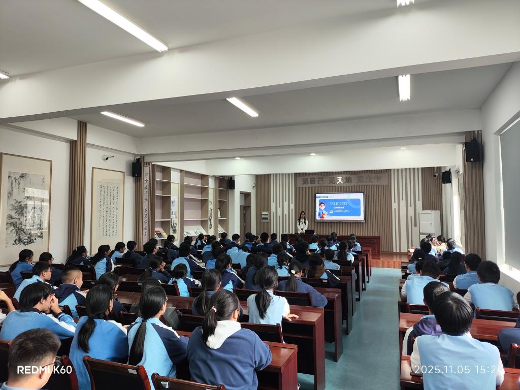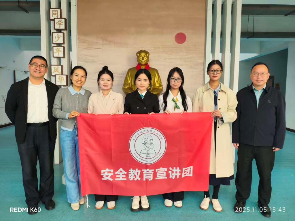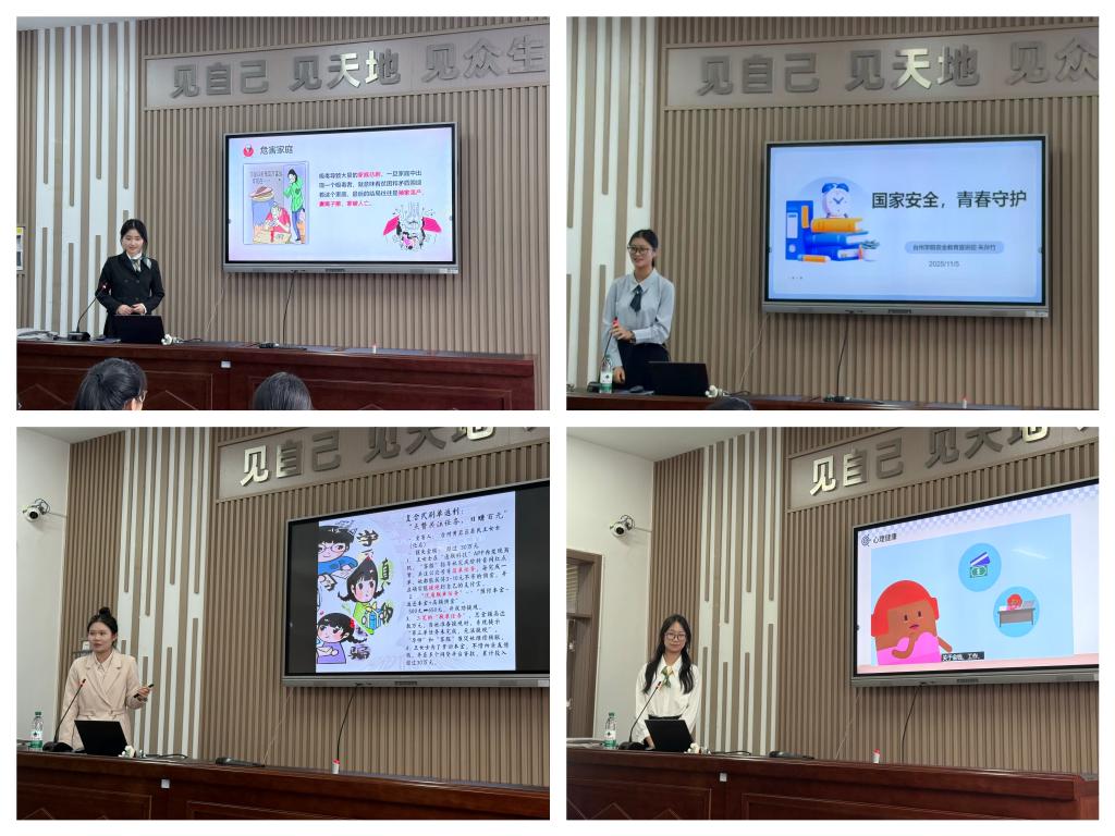 为筑牢青少年安全防线,推动大中小学思政教育一体化建设,11月5日,台州学院马克思主义学院安全教育宣讲团在李正军、范淑燕两位老师的带领下走进台州学院附属学校,为初三学子带来一场涵盖禁毒、国家安全、防诈、心理健康四大领域的安全教育宣讲,以生动案例与互动体验让安全知识入脑入心,赢得师生广泛好评。