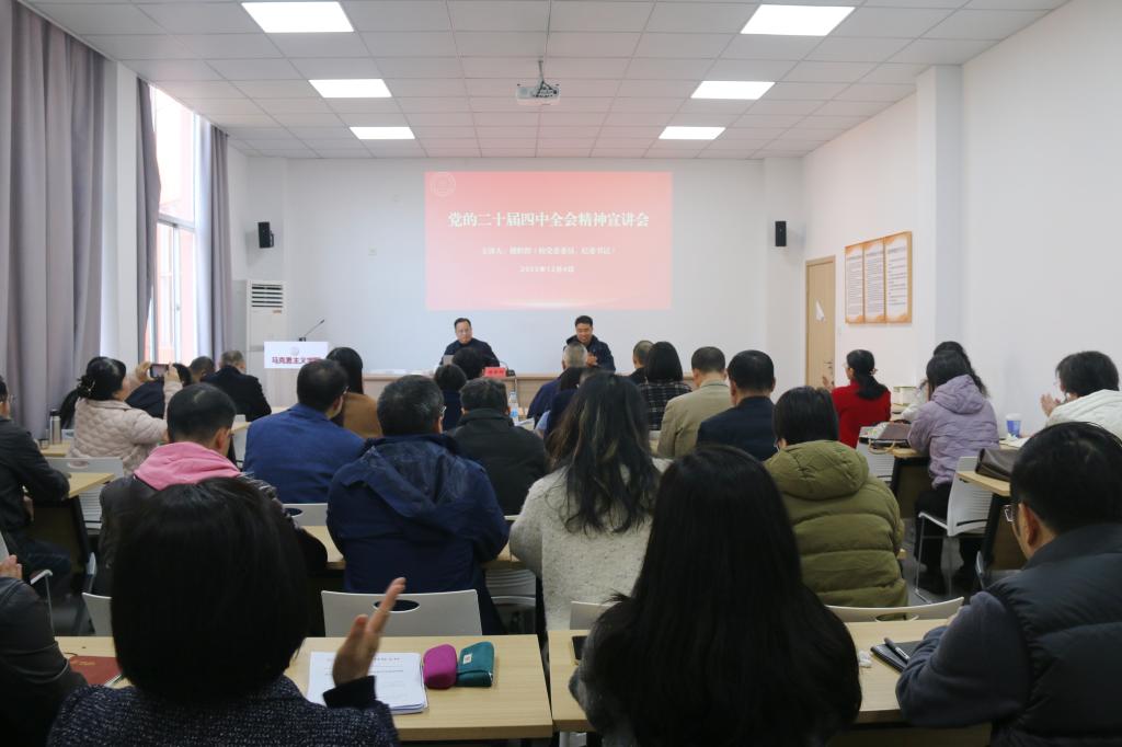 为深入学习贯彻党的二十届四中全会精神,凝聚推动学院高质量发展的思想共识,2025年12月4日下午,马克思主义学院邀请学校党委委员、纪委书记楼胆群作专题宣讲报告。学院党政领导班子全体成员及全体教职工参加宣讲会,会议由党总支书记王胜主持。