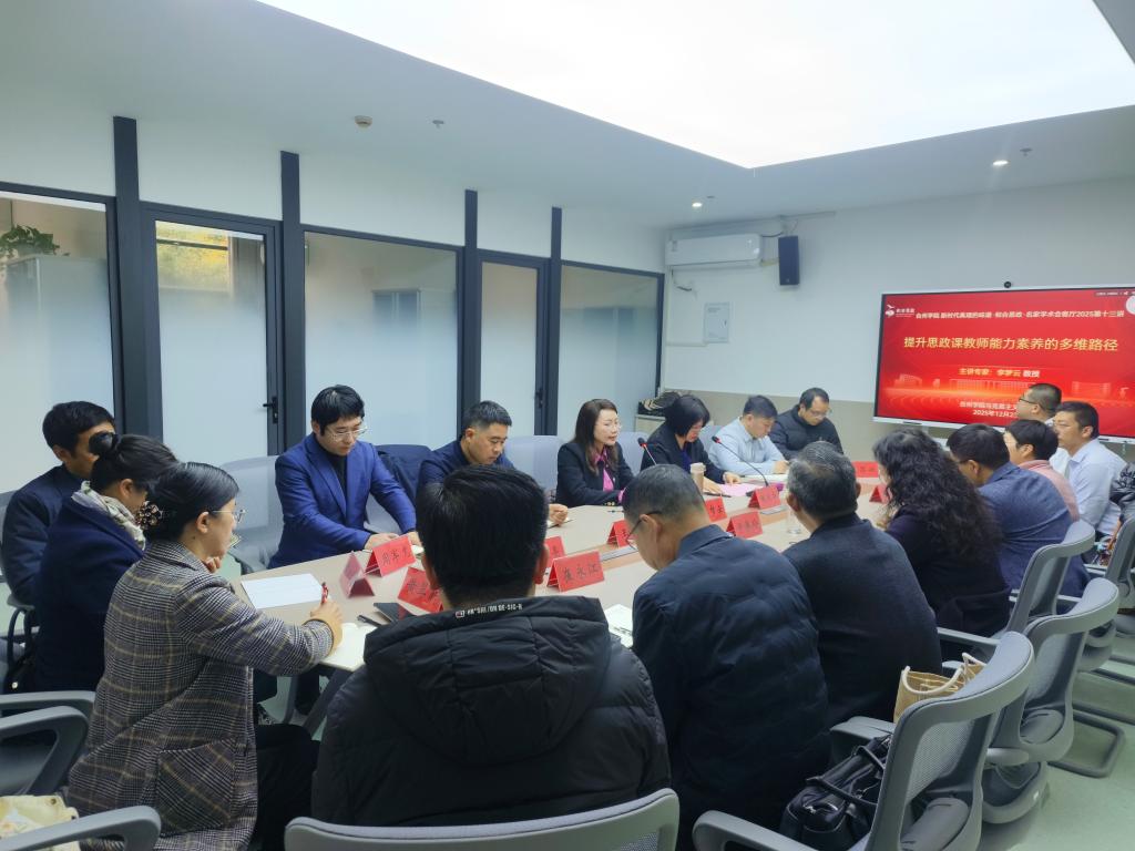 12月23日,我院第十三期新时代真理的味道·和合思政·名家学术会客厅活动如期举行。全国宣传思想文化青年英才、浙江工商大学马克思主义学院院长李梦云教授应邀作题为《提升思政课教师能力素养的多维路径》的专题讲座。学院院长张天华教授主持本次报告会,学院党政领导班子成员及骨干教师代表参加交流。