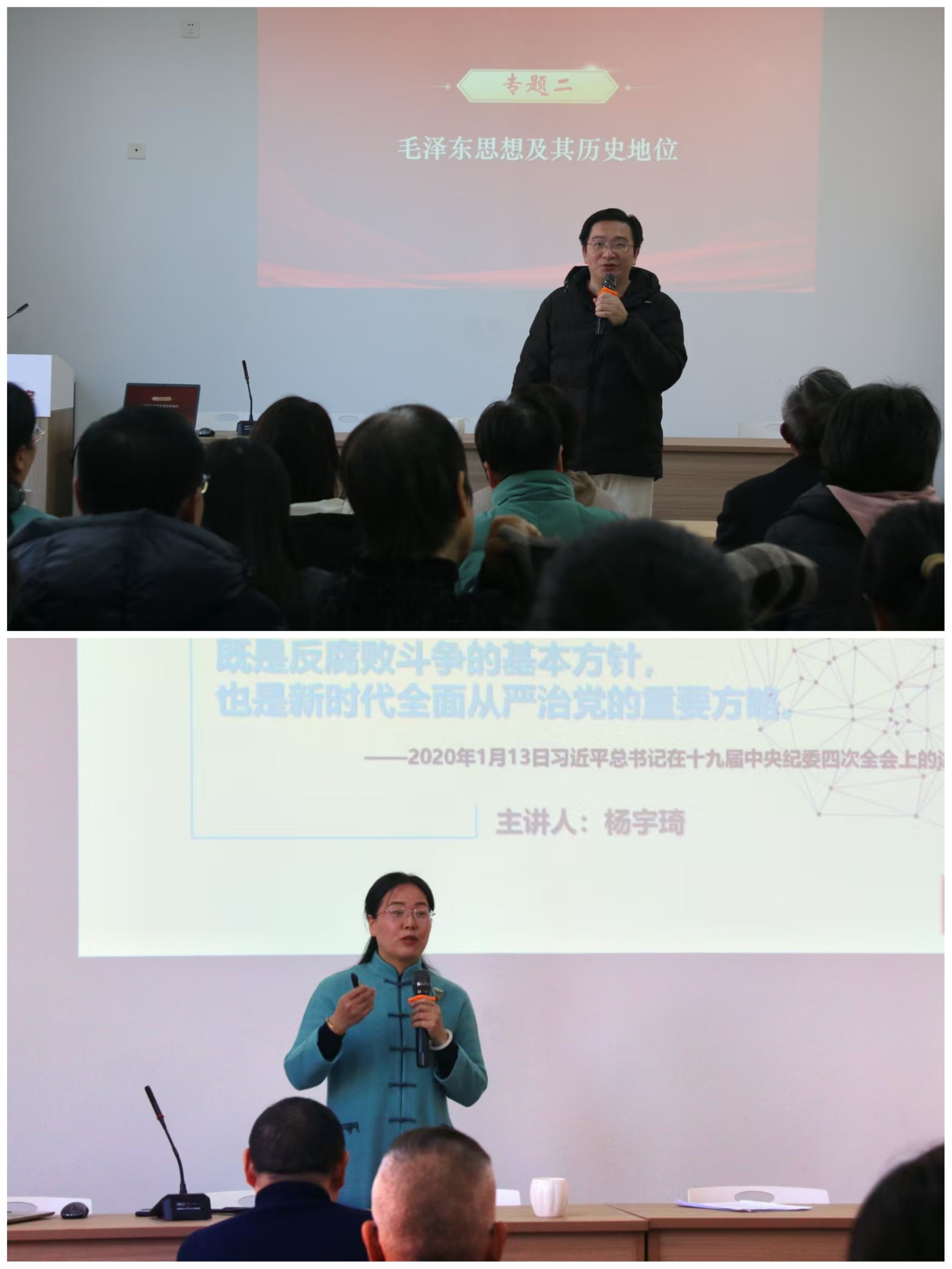 柯联民、杨宇琦两位老师教学展示的课程分别是《毛泽东思想和中国特色社会主义理论体系概论》《习近平新时代中国特色社会主义思想概论》其中一个教学章节。他们围绕课程目标,分解教学重点难点,以问题为导向,设计问答互动环节,采用图景展示、经典案例、故事情境、教学道具等辅助教学手段,生动阐释了毛泽东思想形成发展的历史背景、社会条件和实践基础,以及坚定不移推进反腐败斗争的内因外因理论逻辑和启示借鉴。他们的教学示范,以创新设计彰显思政课堂魅力,层层递进,实现理论深度与情感共鸣的融合。